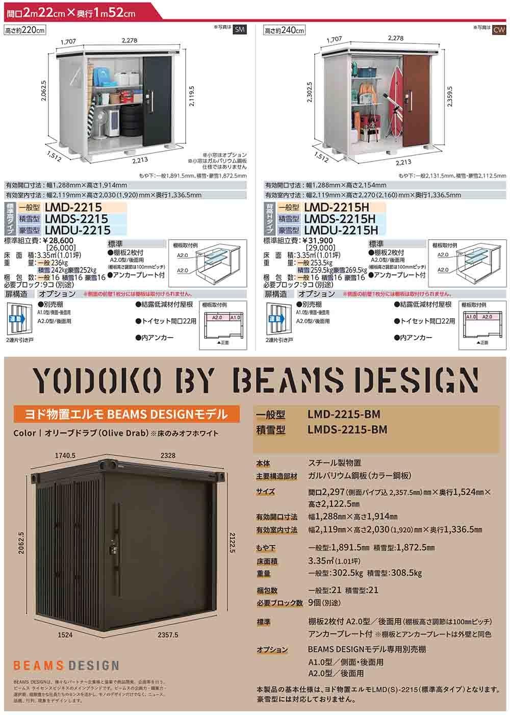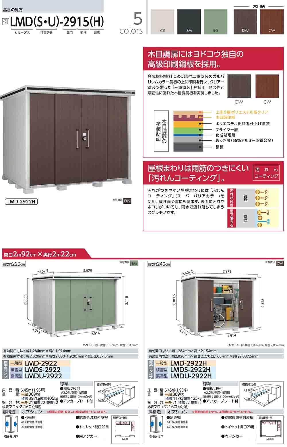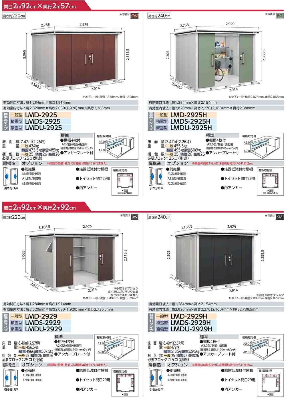 エルモ 中・大型物置 LMDS-2229 2連片引き戸 標準高タイプ 積雪型 間口2213×奥行2914×高さ2116