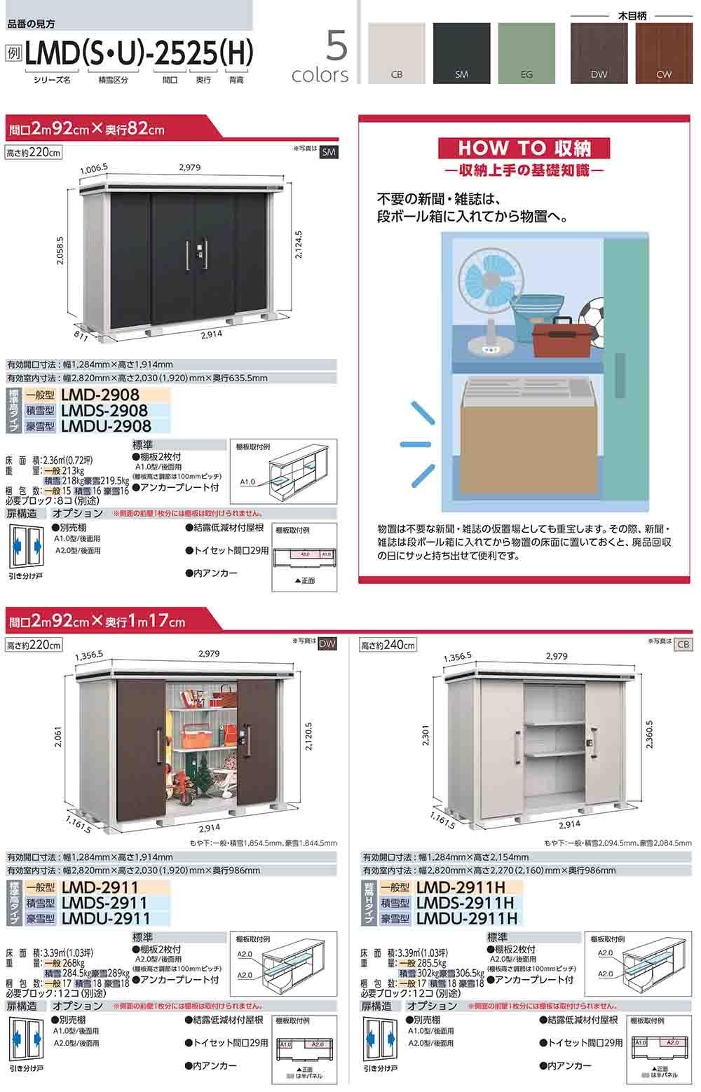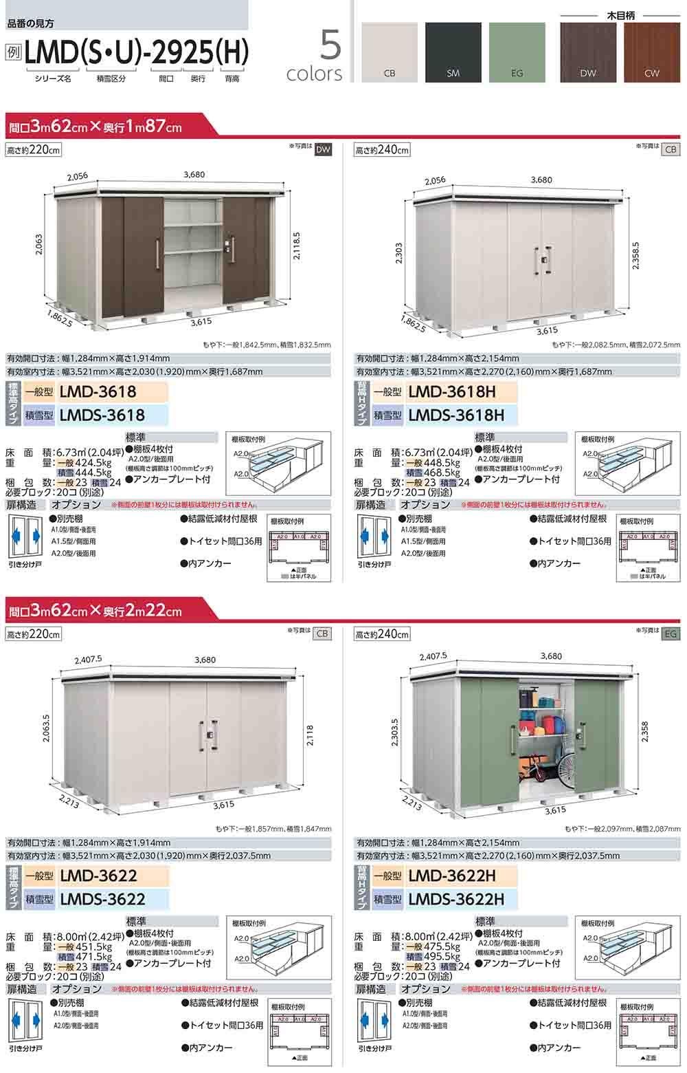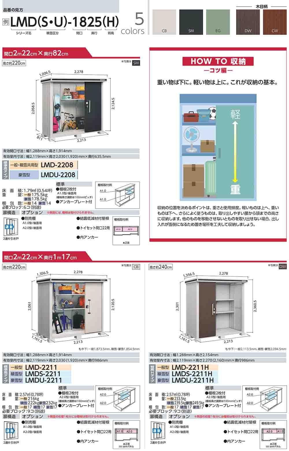 エルモ 中・大型物置 LMDS-2229 2連片引き戸 標準高タイプ 積雪型 間口2213×奥行2914×高さ2116