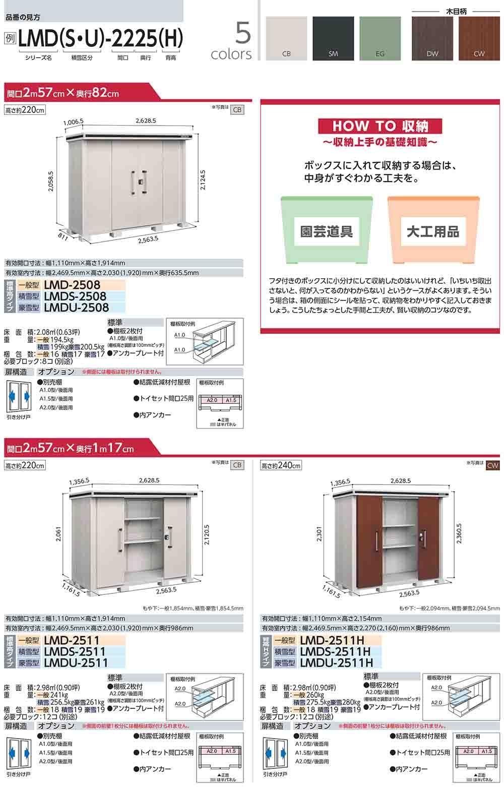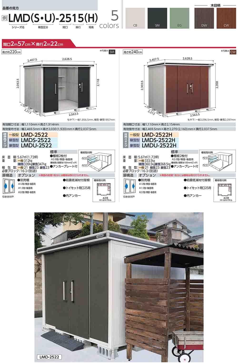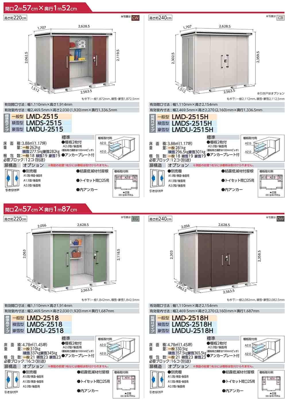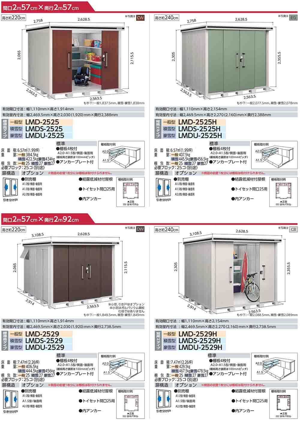エルモ 中・大型物置 LMDS-2225 2連片引き戸 標準高タイプ 積雪型 間口2213×奥行2564×高さ2116