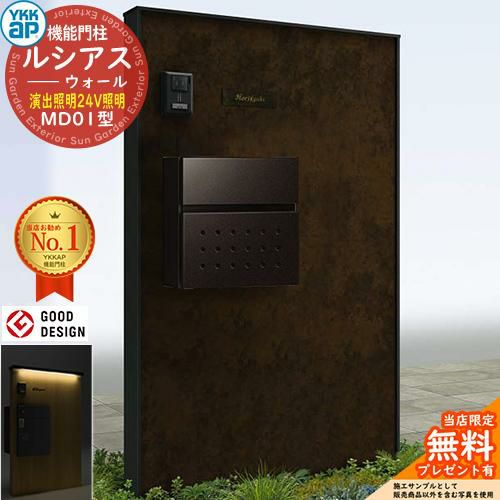 ルシアスウォール MD01型 ポスト正面納まり 演出照明タイプ(24V照明) 本体:アルミ色 エクステリアポストT10型(複合色)