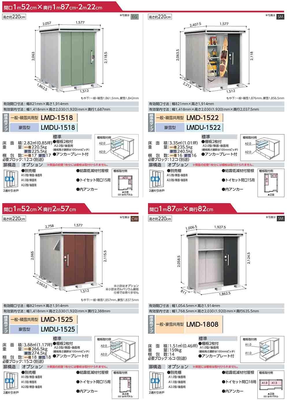 エルモ 中・大型物置 LMD-1522 2連片引き戸 標準高タイプ 一般・積雪共用型 間口1512×奥行2213×高さ2118