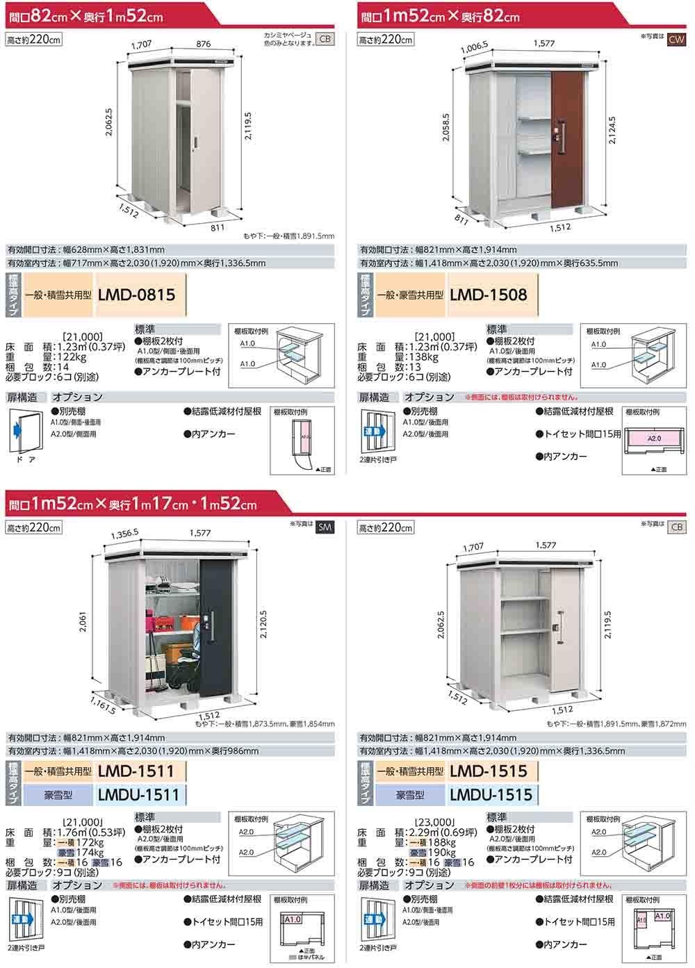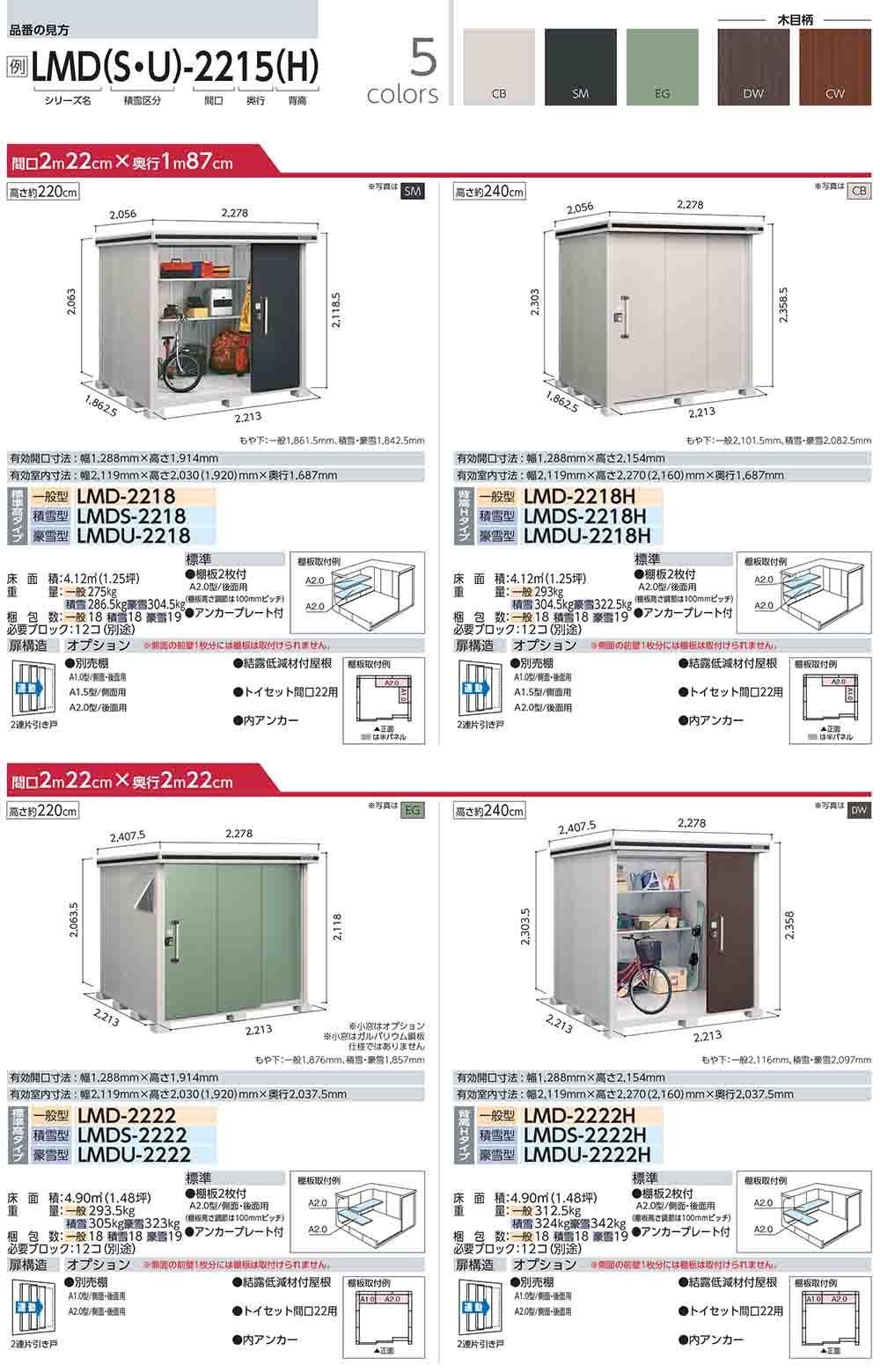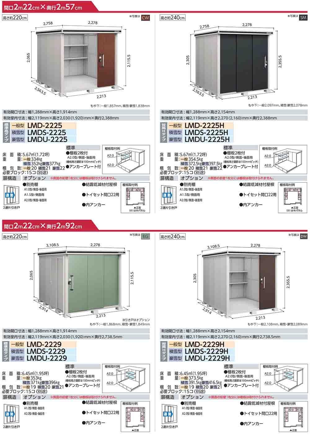 エルモ 中・大型物置 LMDS-2215 2連片引き戸 標準高タイプ 積雪型 間口2213×奥行1512×高さ2120