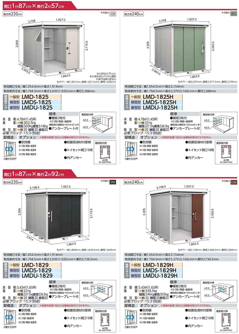 エルモ 中・大型物置 LMDS-1825 2連片引き戸 標準高タイプ 積雪型 間口1863×奥行2564×高さ2116