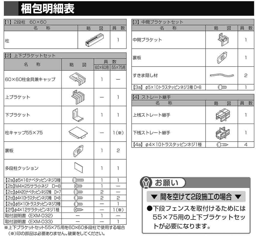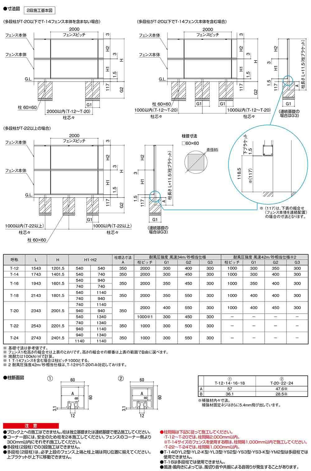 LIXIL フェンスAA 多段柱(2段柱)
