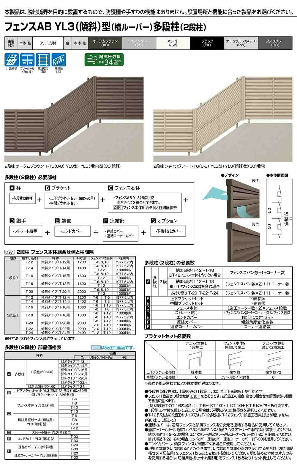 LIXIL リクシル フェンス 目隠し 境界仕切り 3段支柱 三段柱 多段支柱 アルミフェンス 目隠し 囲い 自在柱 ラティスフェンス ルーバーフェンス