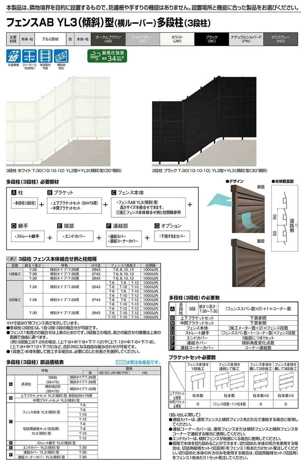 フェンスAB YL3(傾斜)型 アルミ色
