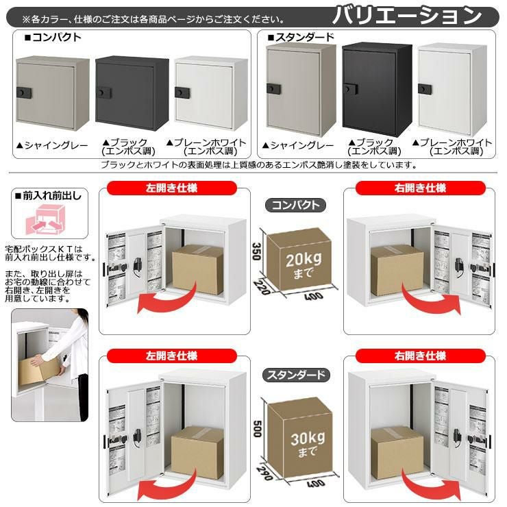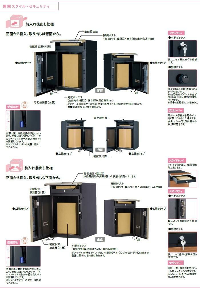 戸建住宅用宅配ボックス 前出し 右開き マットブラック 樹脂生地色