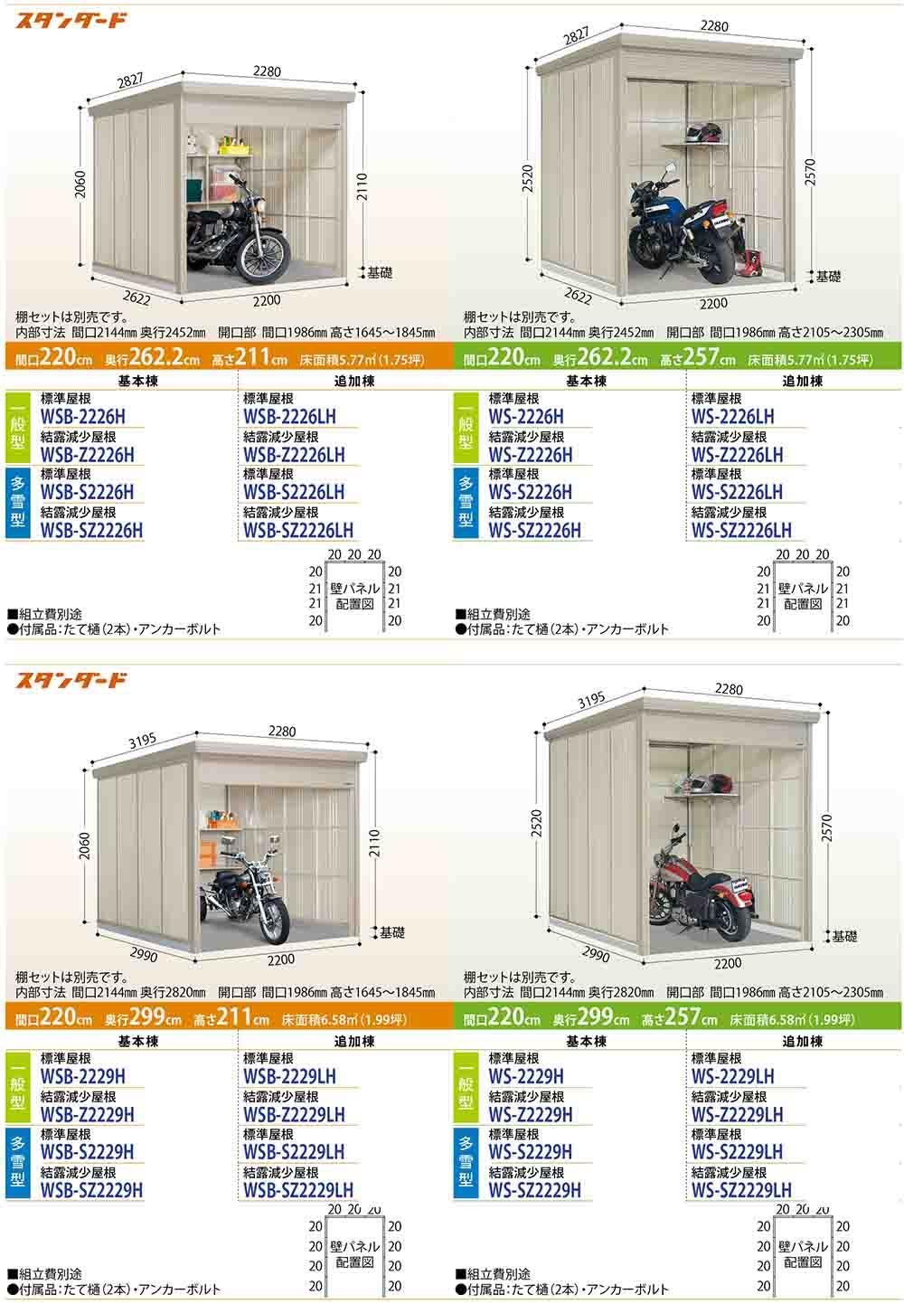 Mr.シャッターマン ダンディ 中型物置 WS-SZ2229LH 結露減少屋根 追加棟 多雪型 間口2200×奥行2990×高さ2570