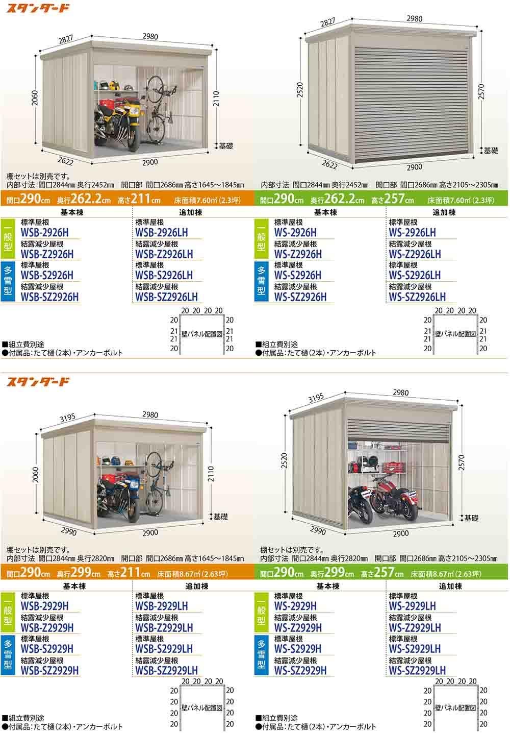 Mr.シャッターマン ダンディ 中型物置 WSB-SZ2926LH 結露減少屋根 追加棟 多雪型 間口2900×奥行2622×高さ2110
