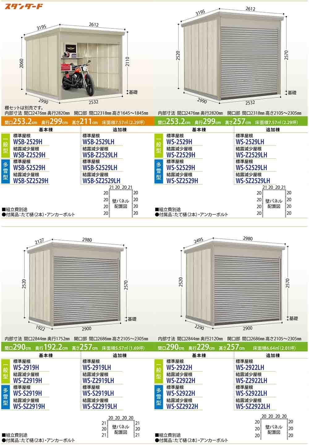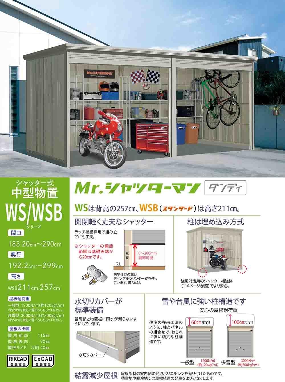 Mr.シャッターマン ダンディ 中型物置 WS-S2926H 標準屋根 基本棟 多雪型 間口2900×奥行2622×高さ2570