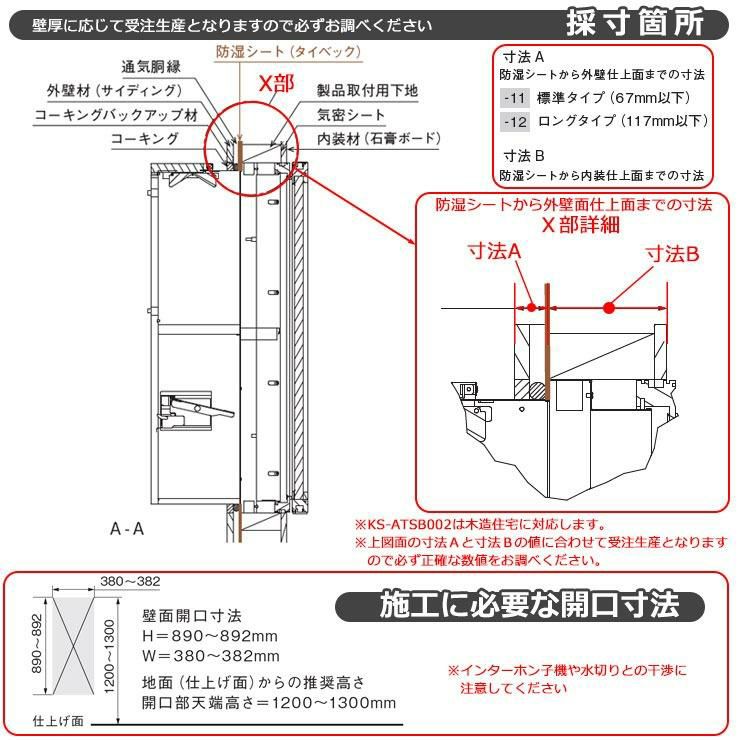 木造住宅壁埋め込みポスト 室内受け取り