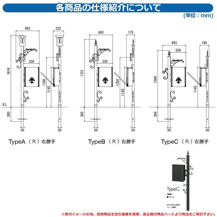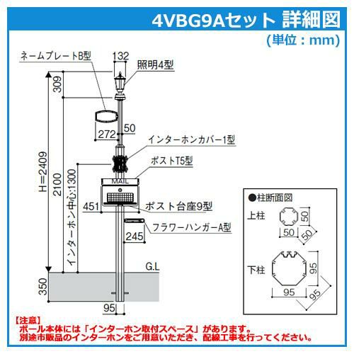 ポストBA14型(前入れ後出し)+LED照明4V型+表札