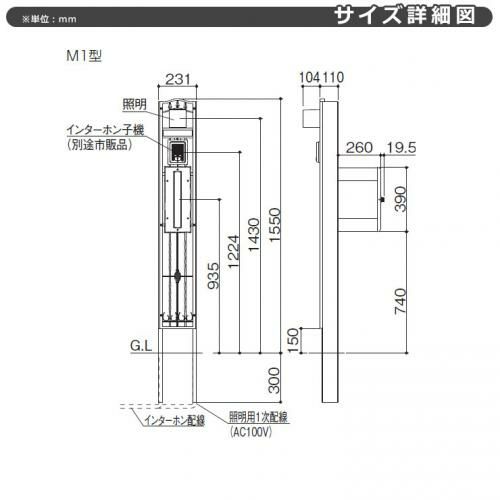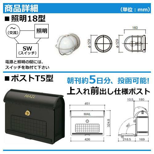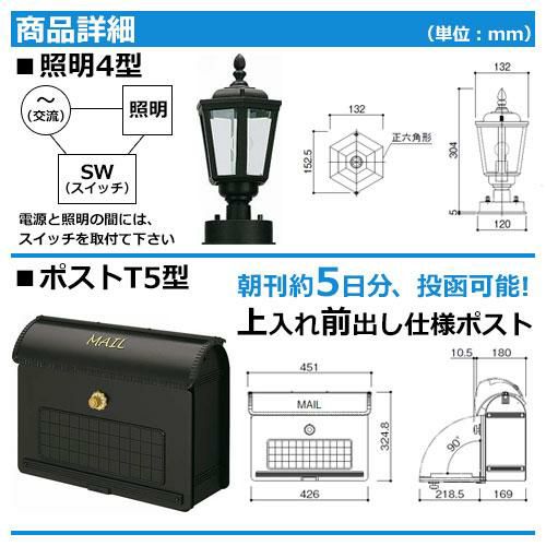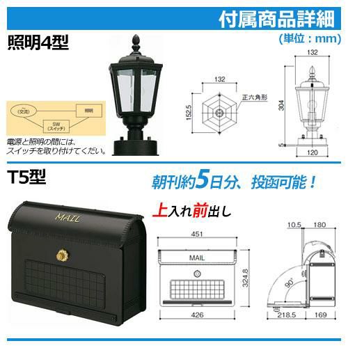 ポストT5型(上入れ前出し)+LED照明4V型+表札