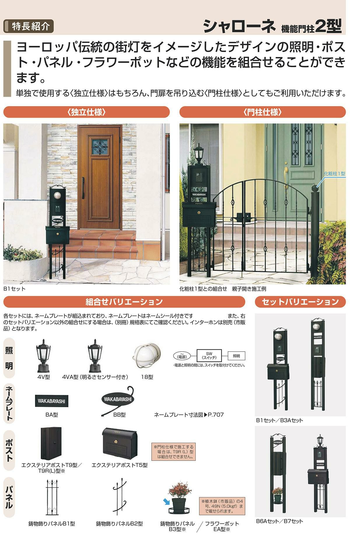 門柱 ポスト 機能門柱 一戸建て用 屋外 一体型セット アルミ鋳物 ヨーロピアン クラシック