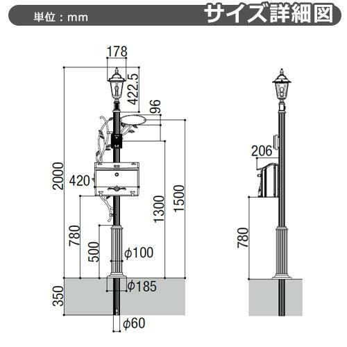 門柱 ポスト 一体 一戸建て用 屋外 レトロ アンティーク 街灯 鋳物