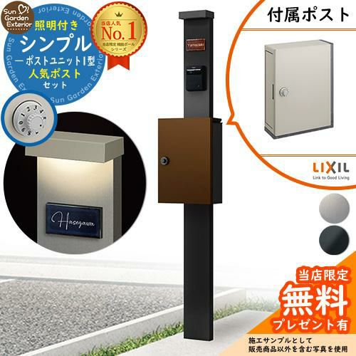 シンプルポストユニット 1型 照明付き本体 P-1型ポスト Limia表札 セット 前入れ前出し