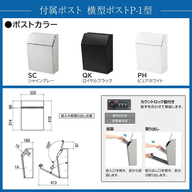 デザインポストユニット 1型 照明なし本体 横型ポスト P-1型 Limia表札 セット 前入れ前出し