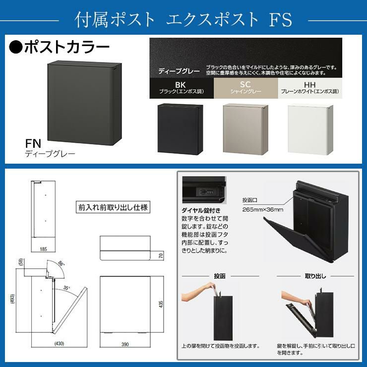 デザインポストユニット 1型 照明なし本体 エクスポストFS Limia表札 セット 上入れ前出し