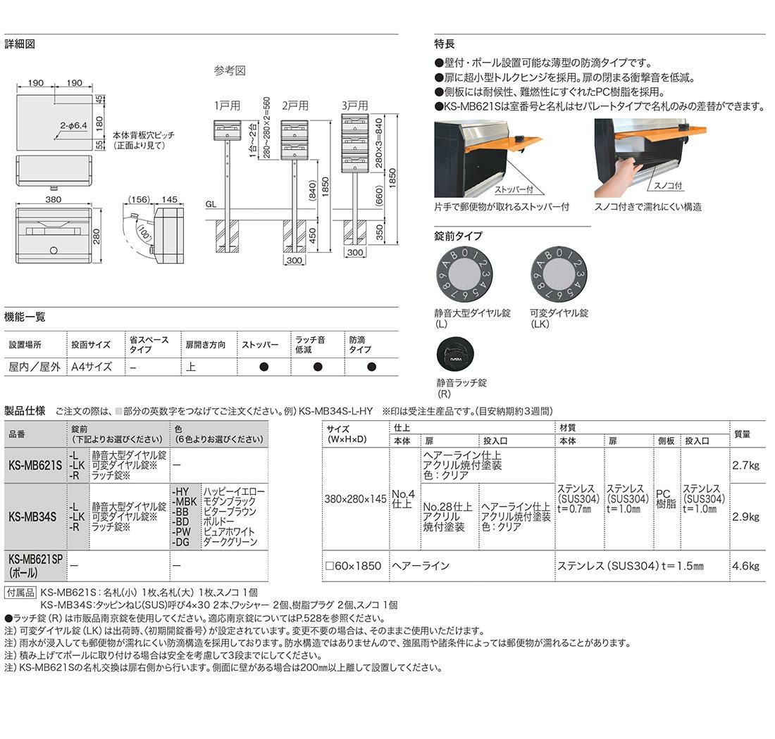 ナスタ 郵便ポスト KS-MB36F-LPK 左勝手 横入れ前出し