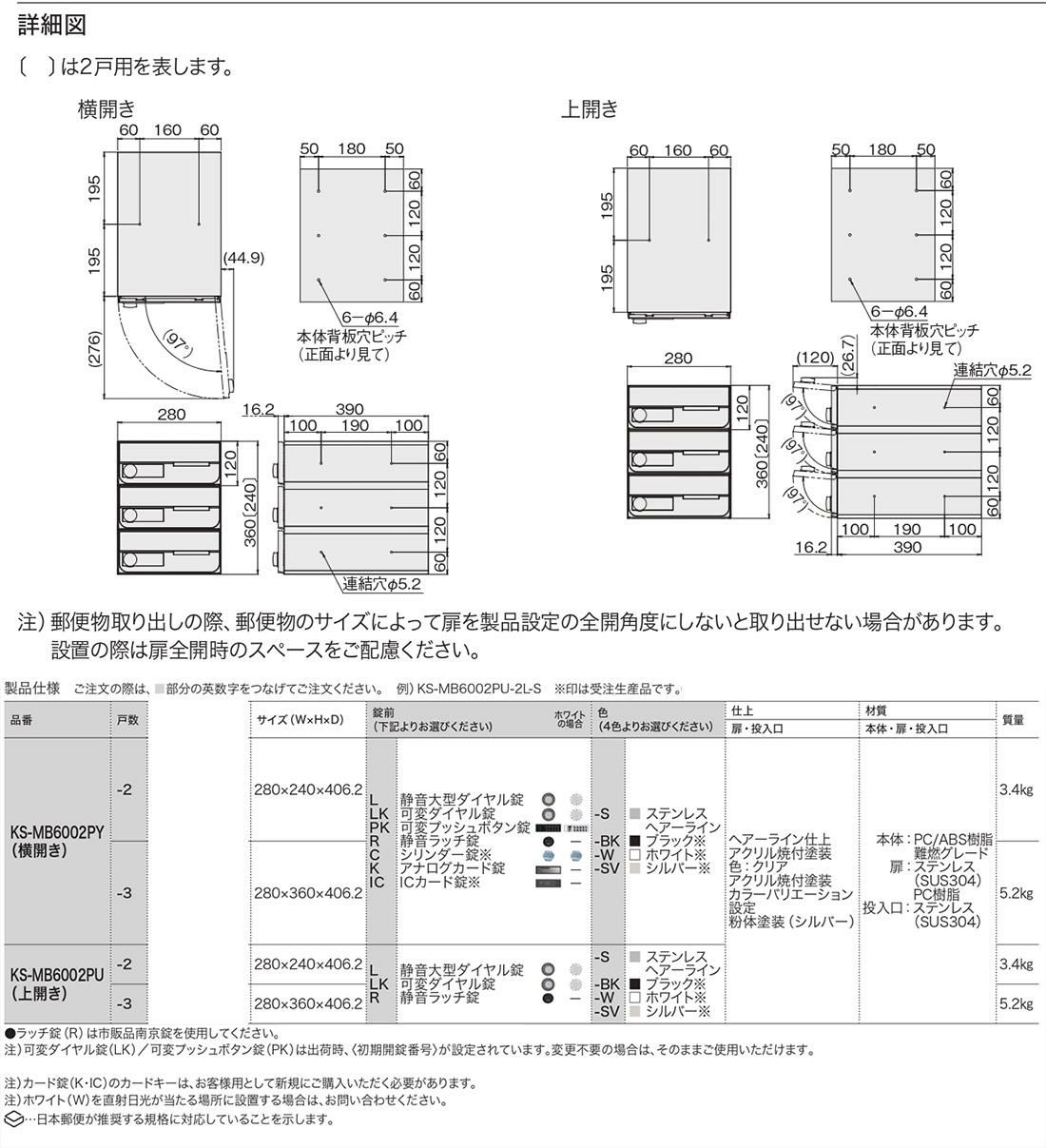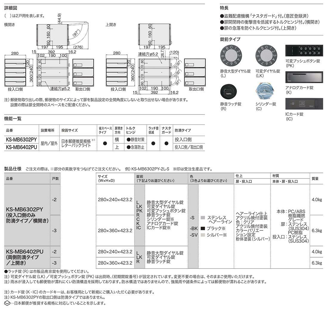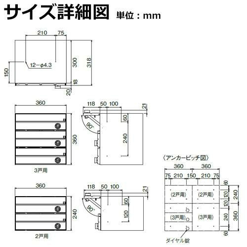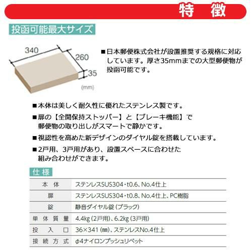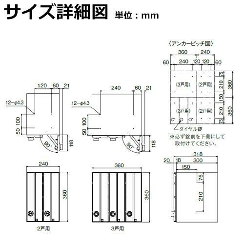 D-ALL 集合住宅用ポスト KS-MB4402PU-3R-□ 静音ラッチ錠 前入れ後出し 3戸用 上開き 両側防滴タイプ