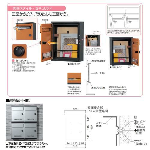 ポスト デザイン性・機能性に優れたスクエアデザインの前入れ前出しポスト!