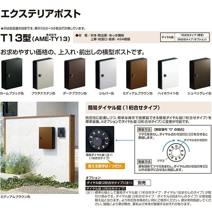 三協アルミ 三協立山アルミ SWE型 ポール建てタイプ 郵便受け ポール式ポスト 前入れ前出し仕様 鍵付き ポスト メールボックス
