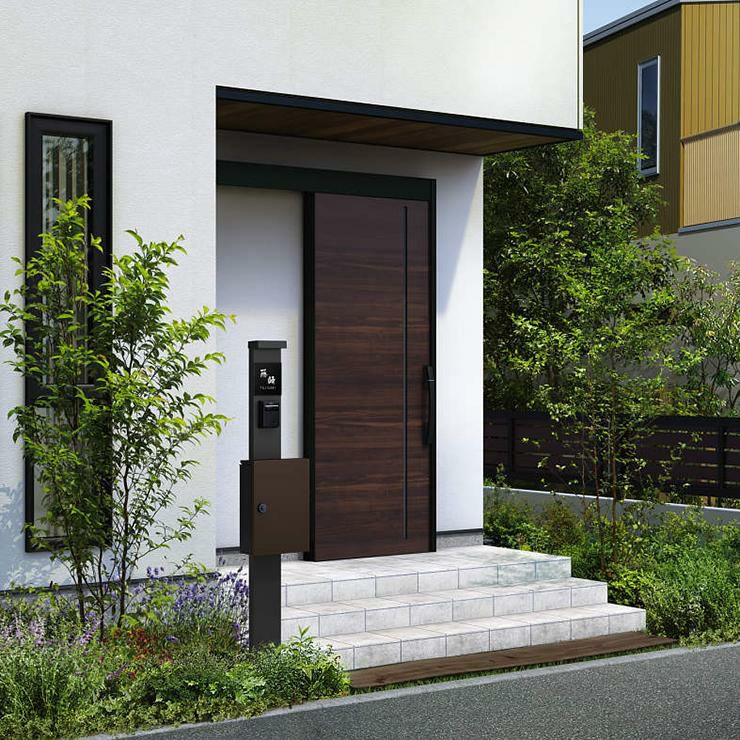 シンプル 門柱 ポスト 戸建て 玄関 庭