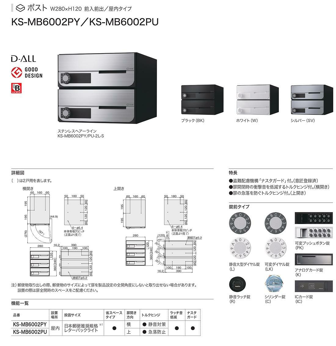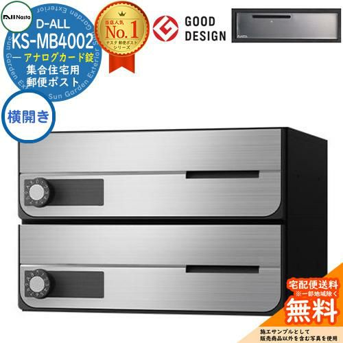D-ALL 集合住宅用ポスト KS-MB4002PY-2K 横開き アナログカード錠 前入れ前出し 2戸用