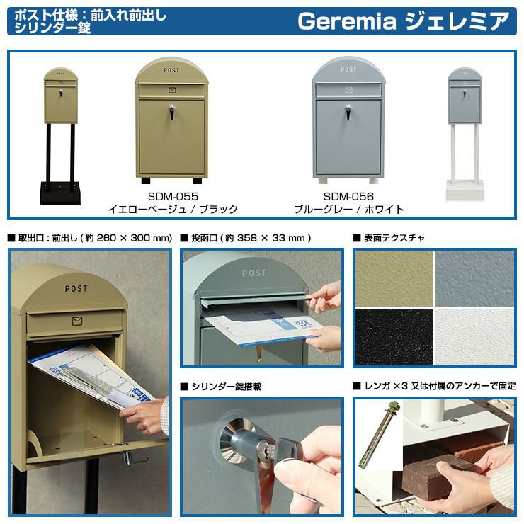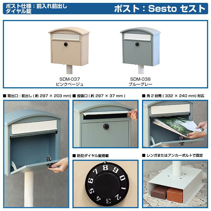 セキスイデザインワークス ポスト ポールセット ポール式 鍵付き ボンボビポスト bobiシリーズ 北欧 おしゃれ 前入れ後出し 防滴